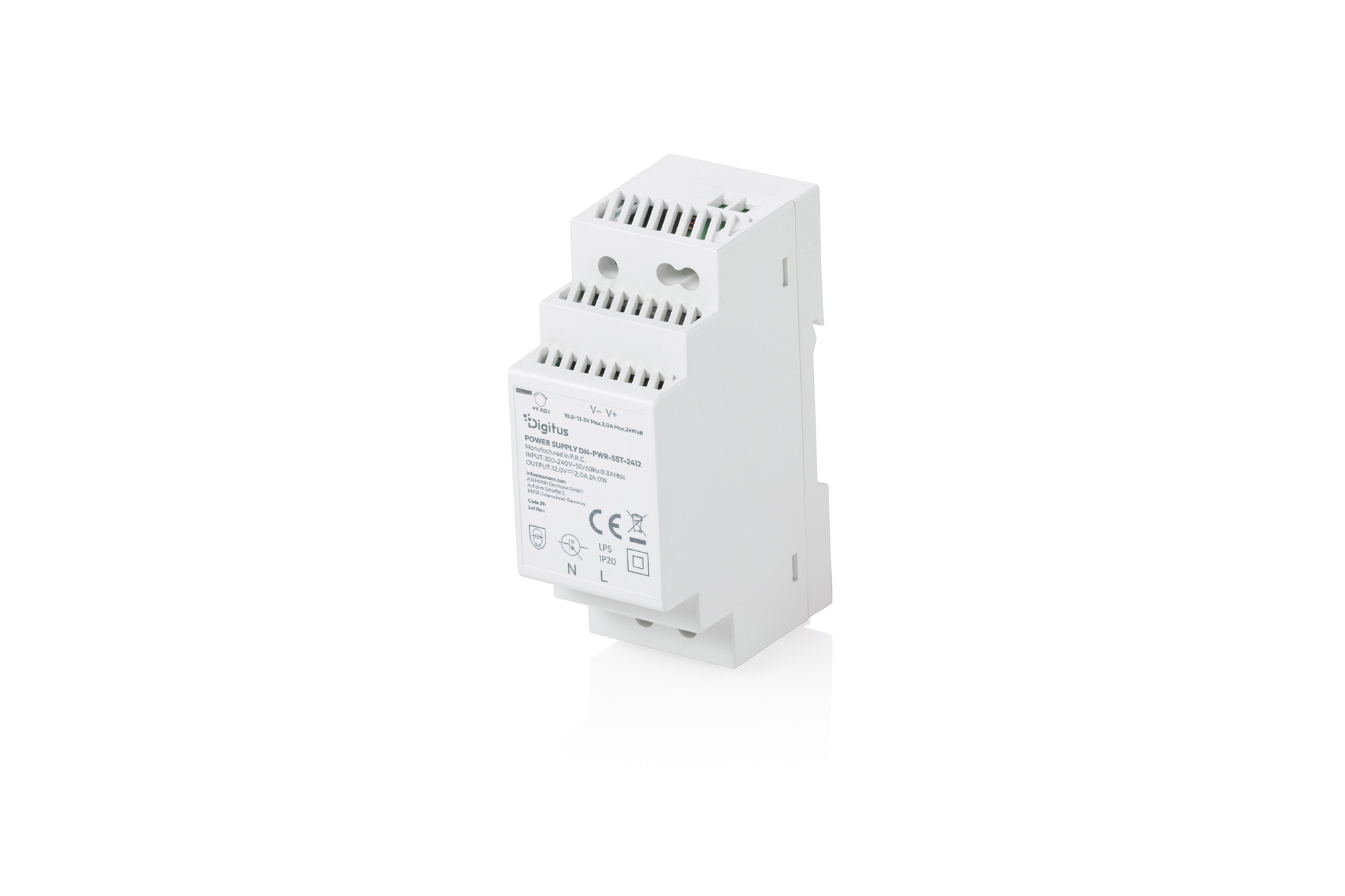 DIGITUS 12V / 2A / 24W Step-Shape DIN-Rail Netzteil (Slim, Class II)