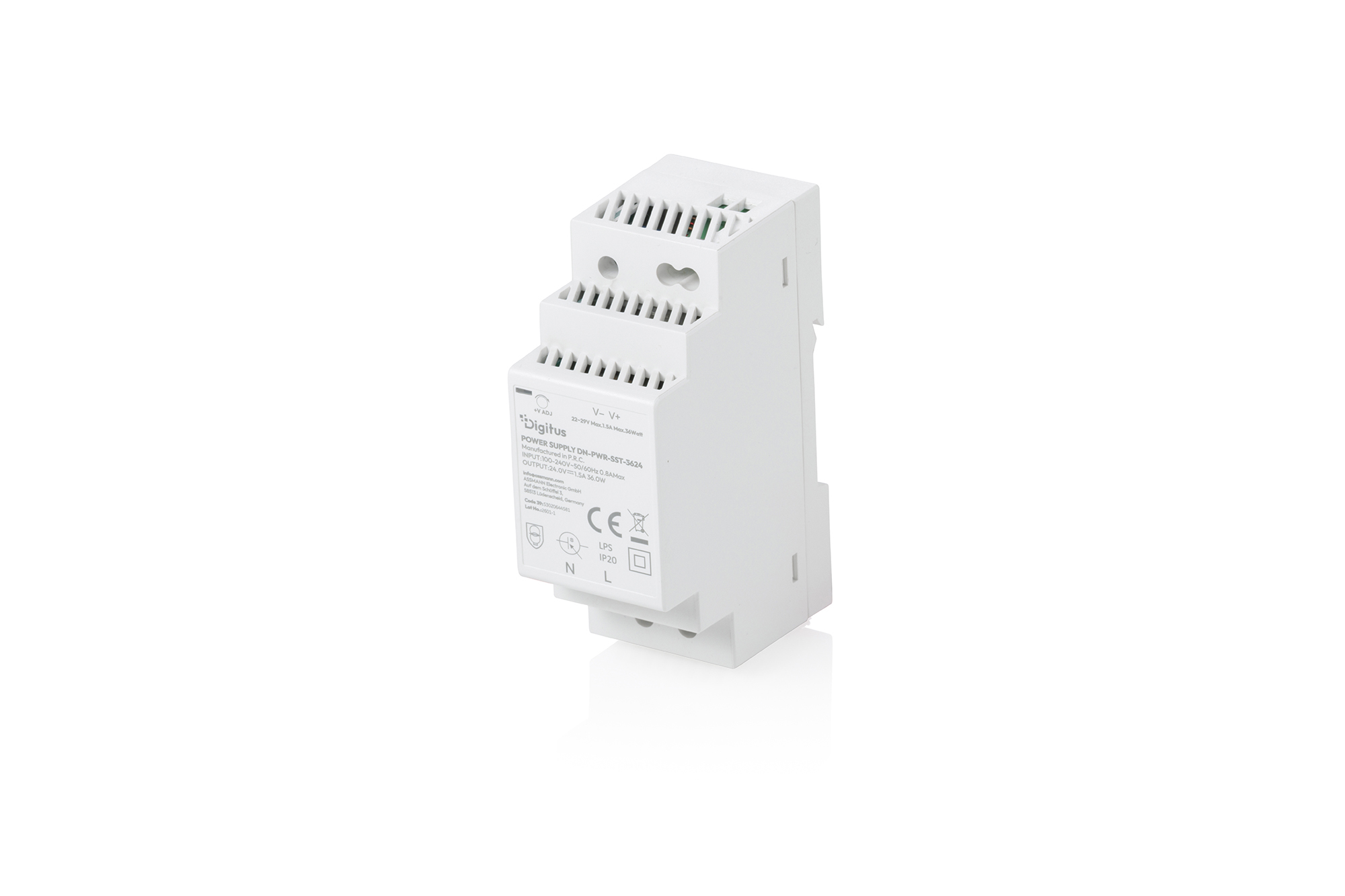 DIGITUS 24V / 1.5A / 36W Step-Shape DIN-Rail Netzteil (Slim, Class II)