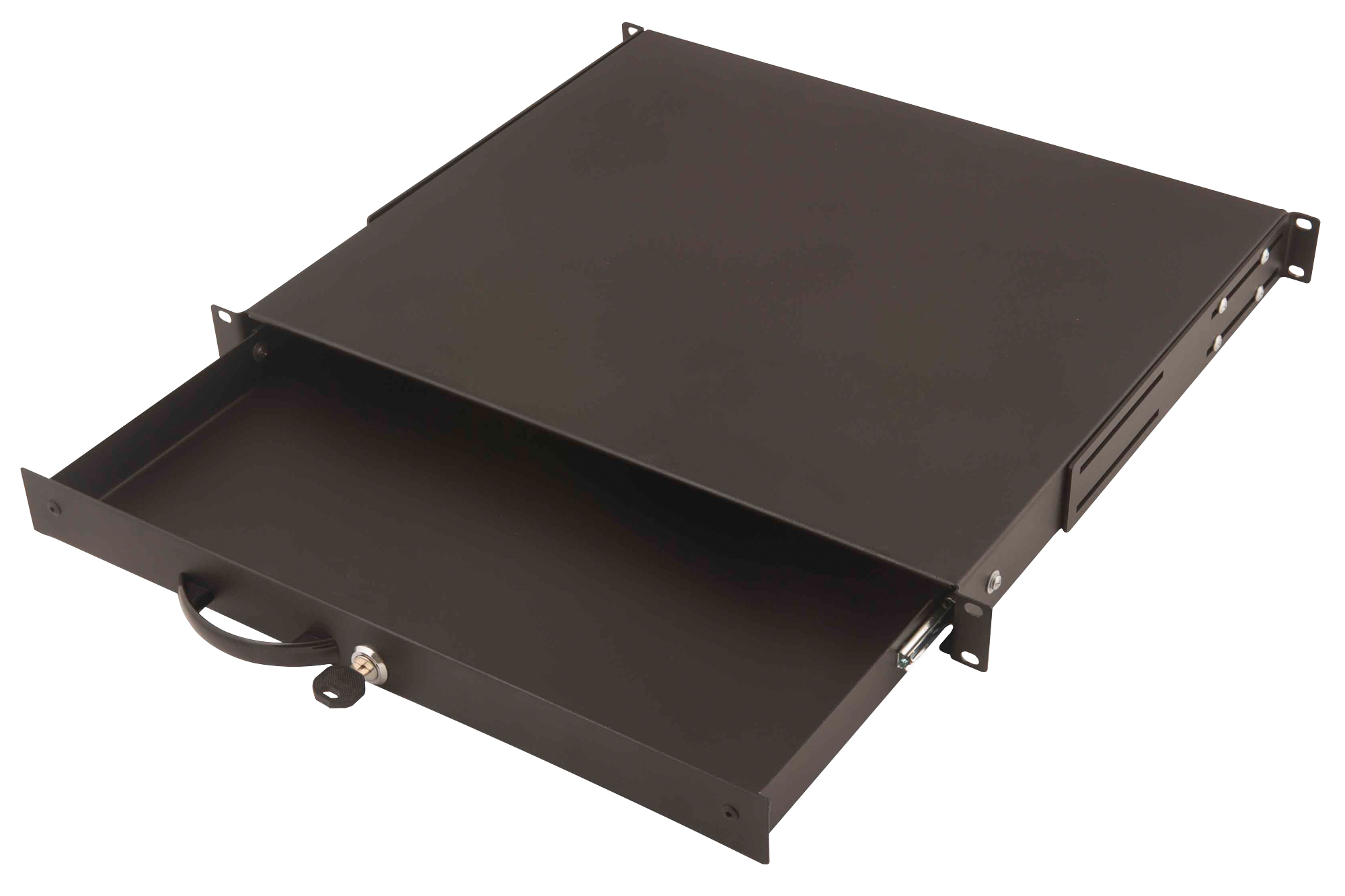 1U lockable drawer with handle 44x481x400 mm, color black (RAL 9005)